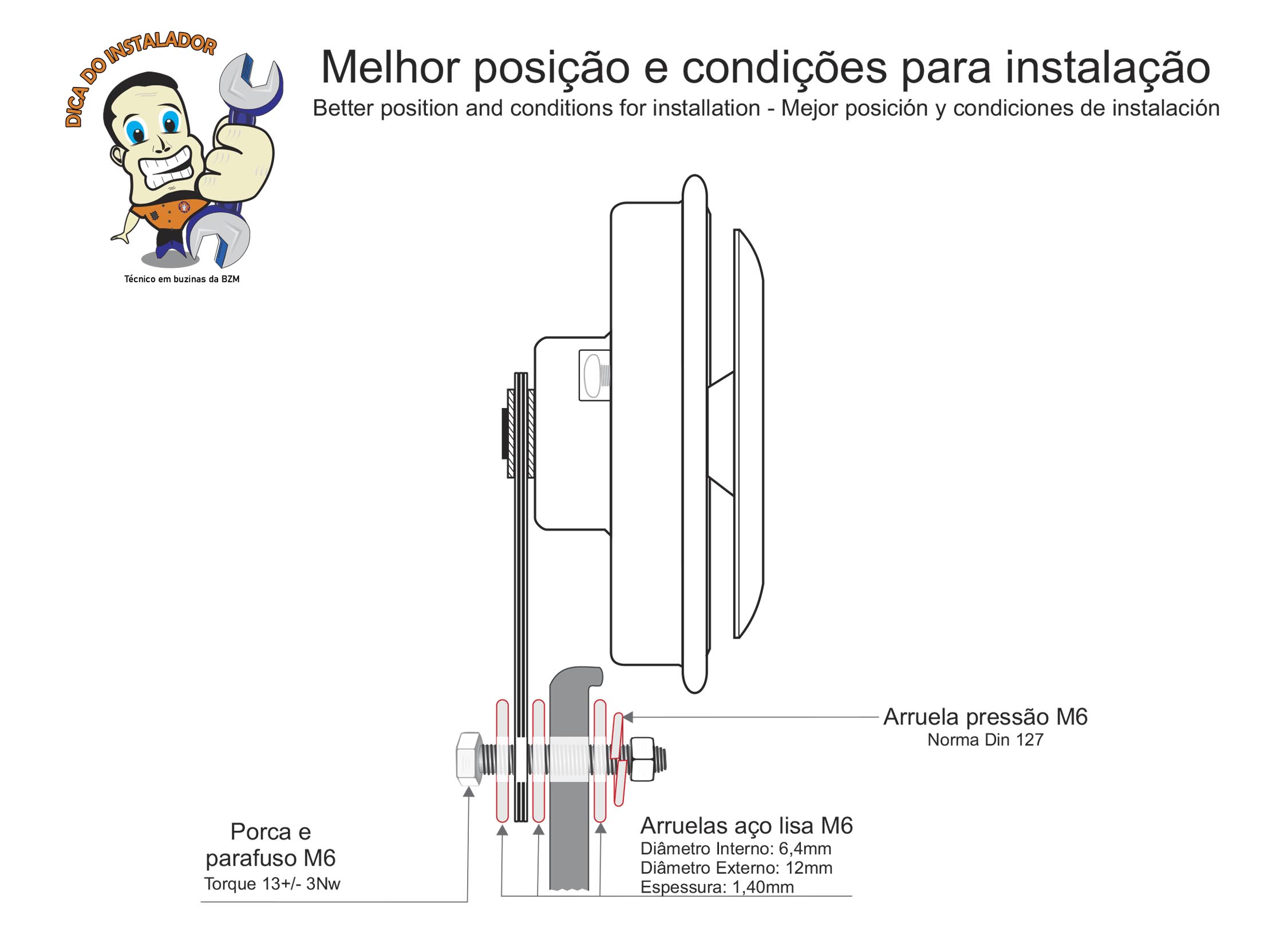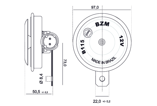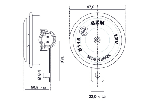 Para uma boa instalação do modelo buzina PERCUSSÃO, são necessários alguns cuidados na hora da instalação. Instale a buzina na carroceria de forma que evite vibrações danosas ao conjunto.