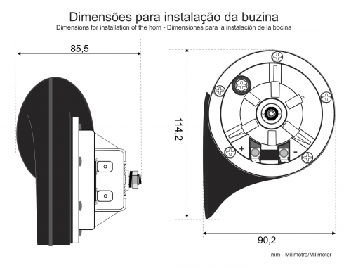 Para uma boa instalação do modelo buzina CARACOL, são necessários alguns cuidados na hora da instalação. Instale a buzina na carroceria de forma que evite vibrações danosas ao conjunto.