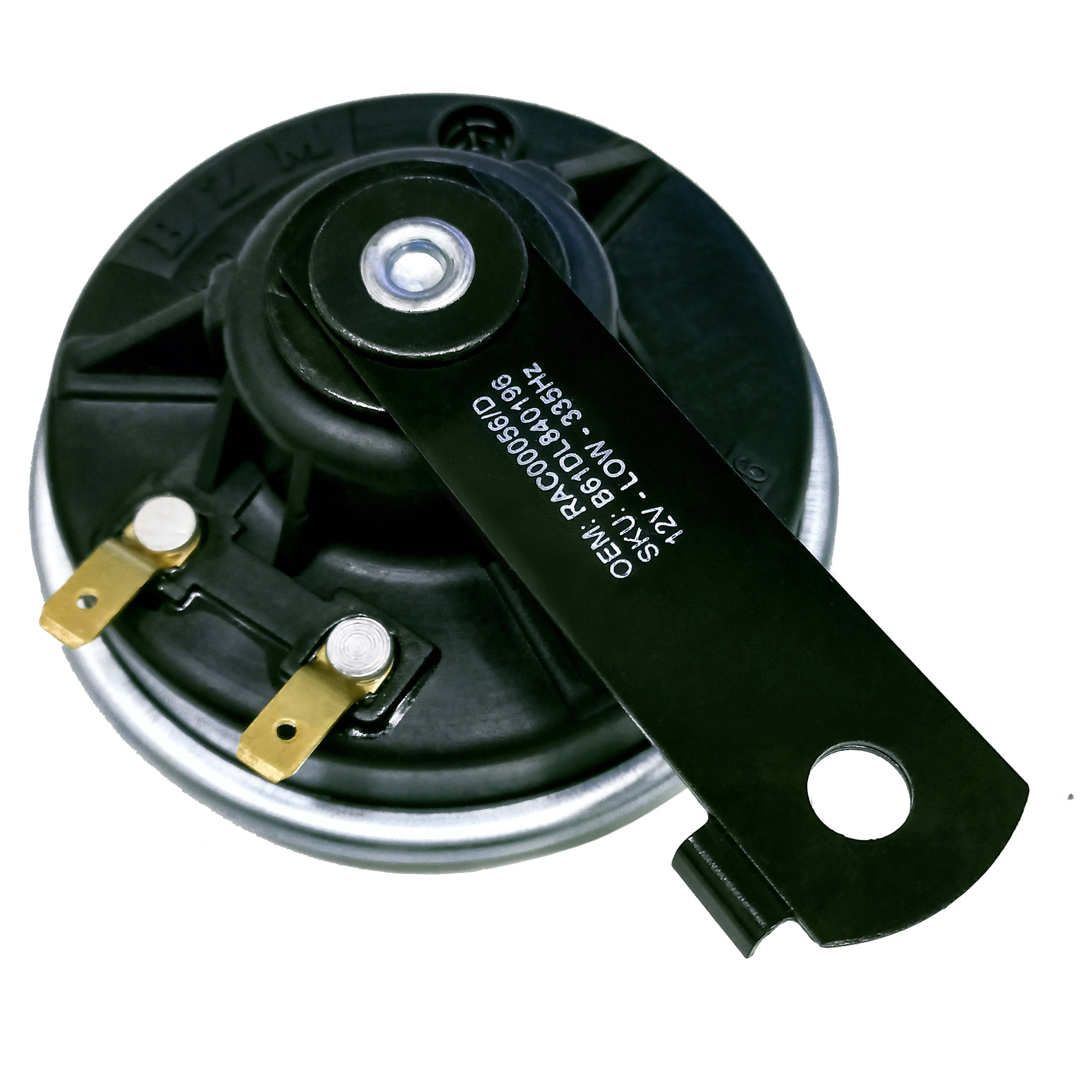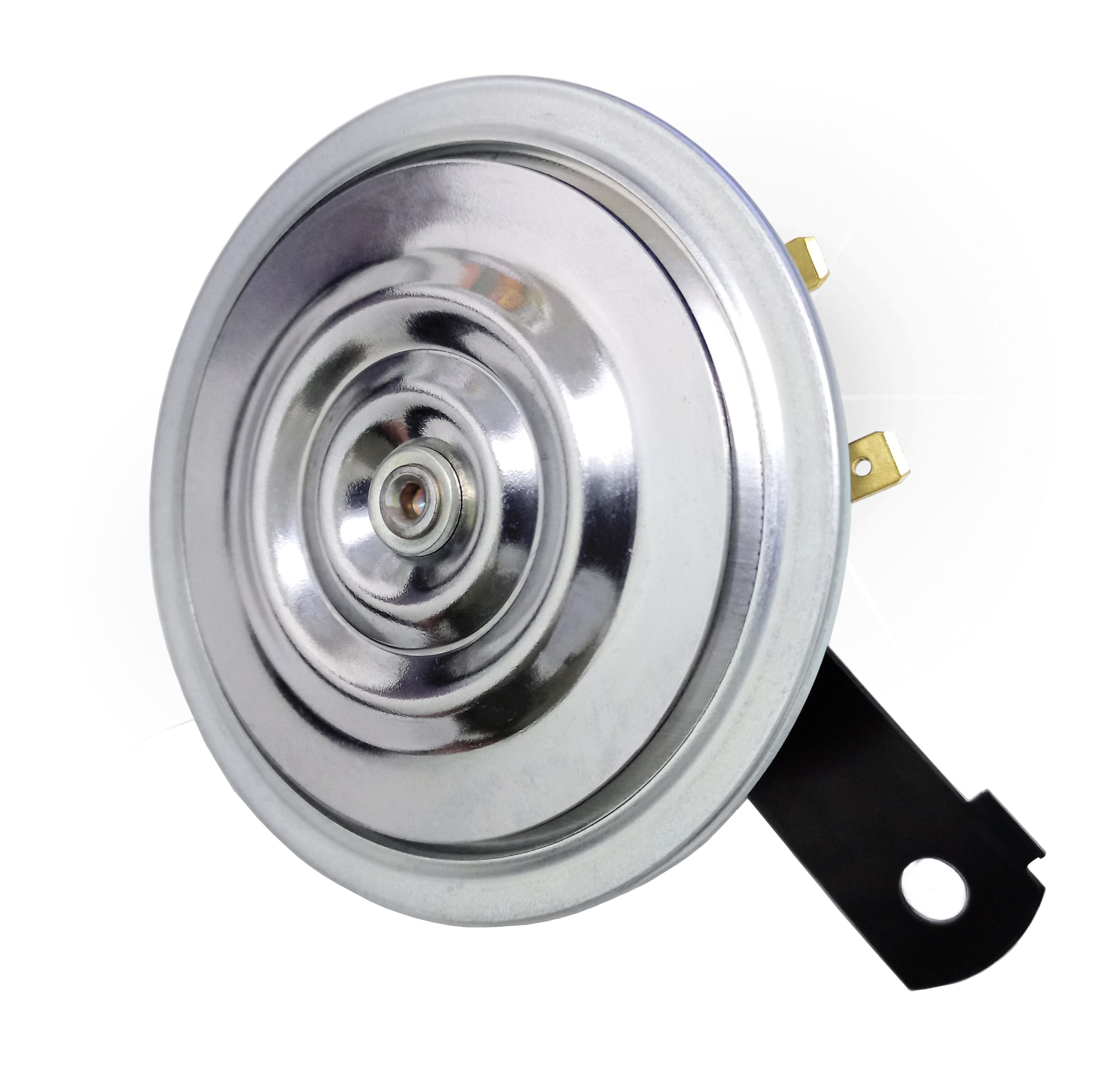 Buzina modelo 1 tom - Ø97mm | Sem relê | Acompanha suporte de fixação modelo original | Alojamento de Nylon com alma de aço | revestimento KTL preto | Badalo cromado | Ligação para 2 terminais, positivo e negativo modelo Faston 6.3 universal - ALTA SONORIDADE PARA MOTOS ROYAL ENFIELD - VEÍCULOS EM GERAL - USO UNIVERSAL