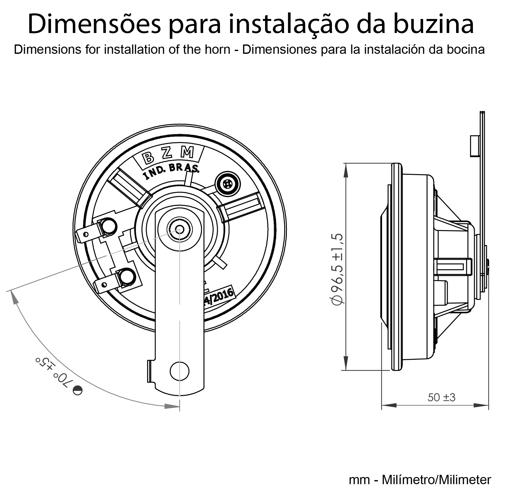 Para uma boa instalação do modelo buzina PERCUSSÃO, são necessários alguns cuidados na hora da instalação. Instale a buzina na carroceria de forma que evite vibrações danosas ao conjunto.