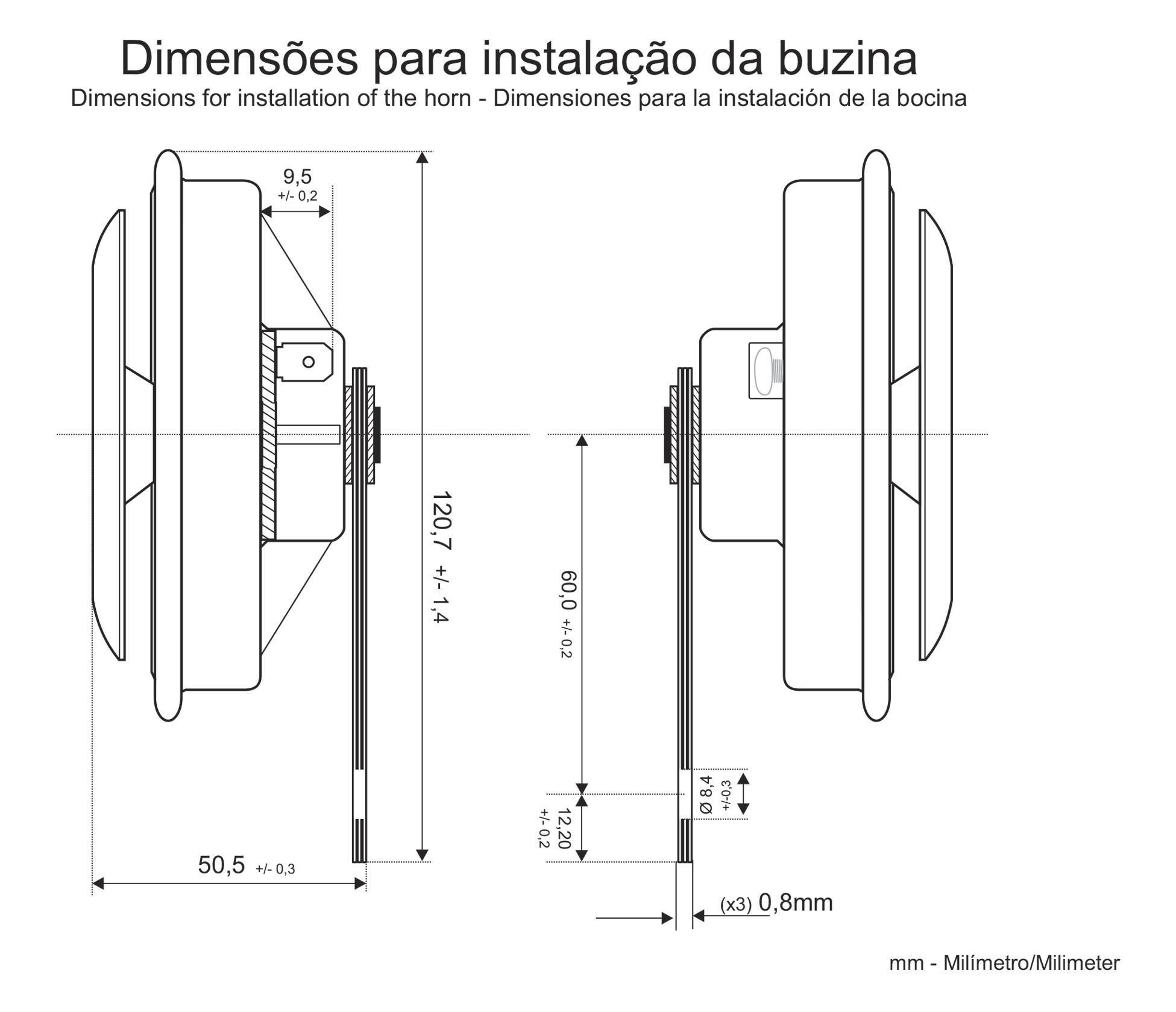 Para uma boa instalação do modelo buzina PERCUSSÃO, são necessários alguns cuidados na hora da instalação. Instale a buzina na carroceria de forma que evite vibrações danosas ao conjunto.